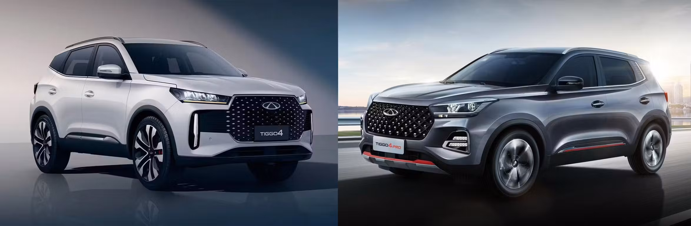 - Мультимедиа: Tiggo 4 — сдвоенные экраны 2×10,25", до 6 динамиков; Tiggo 4 Pro — центральный 10,25" + моноэкран 3,5", 4 динамика.